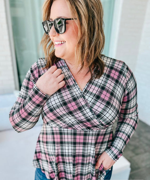 Pretty In Pink Watercolor Floral Yoke Tie Top
